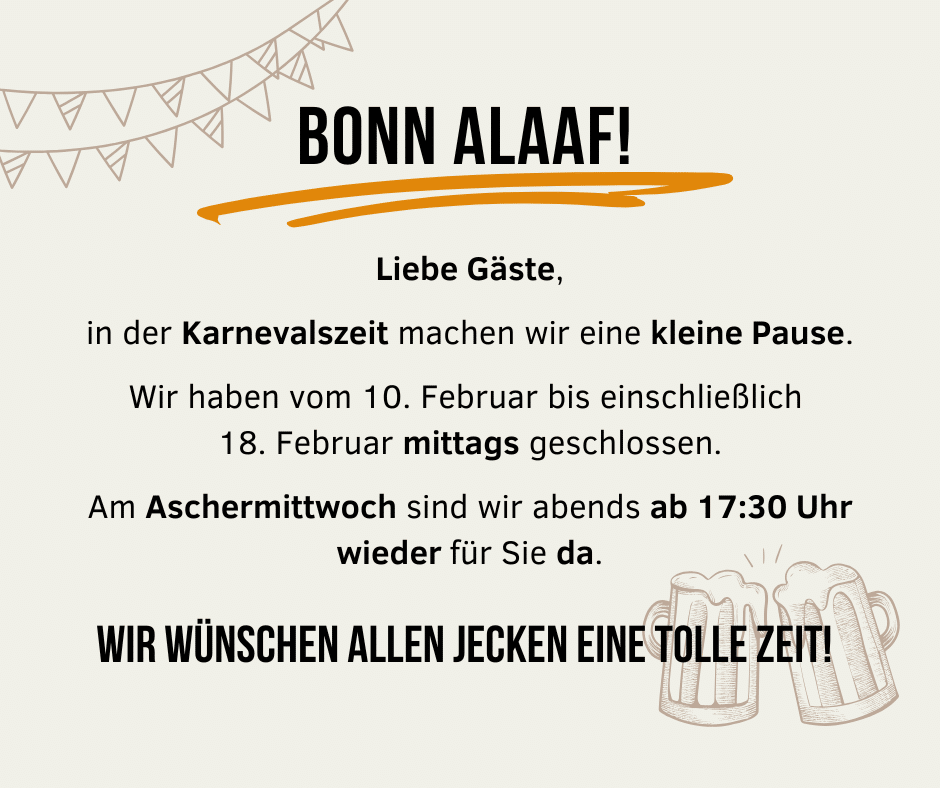 Dafür steht unser Küchenteam um Bashir. Er sorgt dafür, dass jeder Gast ein begeisterndes kulinarisches Erlebnis in Bonn-Poppelsdorf erleben kann.
